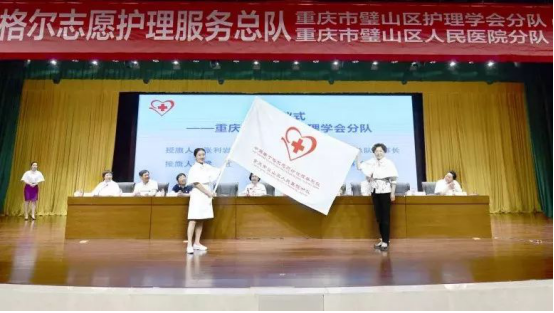 中國南丁格爾志愿護理服務總隊,是由章金媛、司堃笵二位護理前輩發起,中國紅十字會總會批準并命名,于2007年7月在北京成立。這是一支由中國南丁格爾獎章獲得者、護理專業人員、護理院校學生和社會各界愛心人士組成的志愿服務組織,也是全國第一個由護理專業人員組成的志愿者組織。在總隊的感召和引領下,全國已成立346支分隊。此次重慶市璧山區人民醫院、重慶市璧山區護理學會分別成為總隊第347支、第348支分隊。