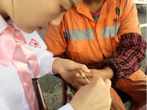 2019 年5 月 3 日,重慶市璧山區(qū)護(hù)理學(xué)會(huì)志愿者 2 人,利用休息時(shí)間自行前往城市管理局, 深入一線關(guān)心、慰問城市保潔工人,受助人數(shù) 55 人,其中為皮外傷者行消毒、止血、包扎 3人,檢測血壓 12 人,檢測血糖 5 人,健康咨詢 5 人,意外傷消毒處理流程宣講 15 人,預(yù)防破傷風(fēng)知識(shí)宣講 15 人等。活動(dòng)剪影如下: