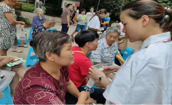 七、內容:六名志愿者進入金科小區開展形式多樣的結核病預防宣傳活動,現場播放動畫結核宣傳視頻、健康咨詢、義診義檢,發放結核防治手冊130份。