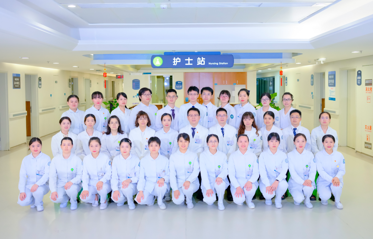 人才隊伍:全科現有醫護人員共34名。醫療團隊擁有醫生13人,其中正高1人、副高2人、中級8人;碩士研究生導師1人,醫學博士3人、在讀博士1人、醫學碩士8人、大學本科2人。美國辛辛那提大學醫學中心訪問學者1人,重慶市優秀醫師1人,重慶市區縣醫院學術技術帶頭人1人,璧山英才1人。護理團隊共15人,其中副主任護師1人,主管護師6人,護師8人。神經電生理團隊擁有醫學碩士2人、大學本科2人,中級職稱4人。高壓氧中心擁有主治醫生1人、護師1人。