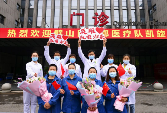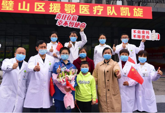 赴鄂時(shí),春寒料峭;歸來時(shí),四月芳菲。在家鄉(xiāng)人民的翹首期盼下,今天,我院第三批援鄂醫(yī)療隊(duì),也是最后一批15名隊(duì)員平安返回璧山!