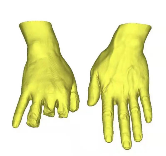 在放射科的支持下,醫院對患者雙手進行了CT三維重建,通過技術處理,虛擬出了患者缺失的手指,再使用新型材料打印出3D模型,模擬患者的斷指。通過對3D模型進行設計取樣,對患者右拇指、中指精準再造。