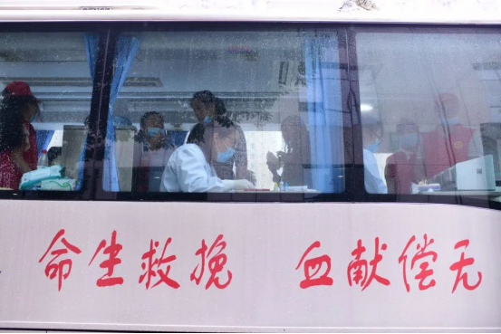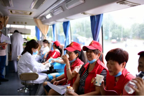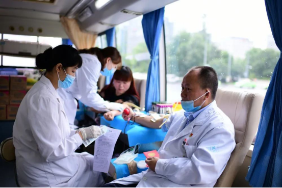 我院醫(yī)護人員帶頭上陣獻血,現(xiàn)場志愿者和群眾也紛紛挽起袖子,獻出熱血。
