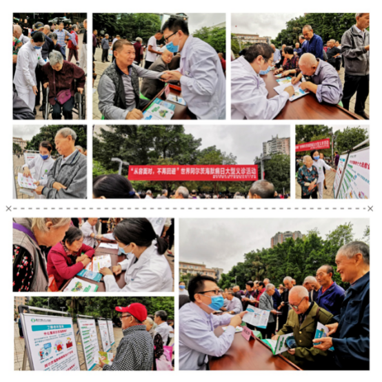 9月21日是世界阿爾茨海默病(老年癡呆癥)日,為了讓群眾正確認(rèn)知老年癡呆癥,改變消極、悲觀的觀念和偏見,當(dāng)天上午,我院神經(jīng)內(nèi)科在大成廣場開展“從容面對 不再回避”義診活動,呼吁人們將關(guān)愛癡呆老人化為行動,位老人構(gòu)建和諧的生活環(huán)境。