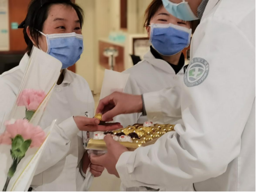 眼科男同胞手捧康乃馨,為眼科所有的女性醫務人員獻上真摯祝福。