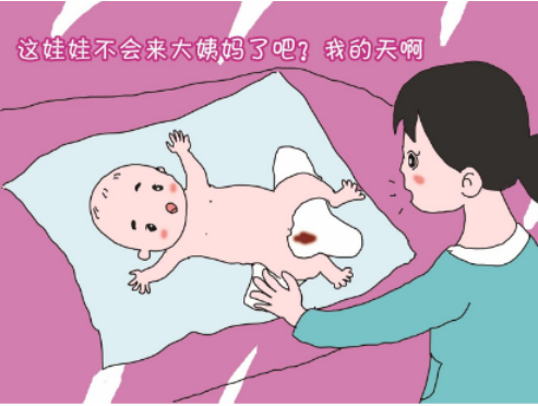 部分女嬰,由于出生后母體雌激素對胎兒的影響中斷,在生后5-7天左右出現灰白色黏液分泌物從陰道流出,可持續2周,有時為血性,故稱為“假月經”。無需處理。