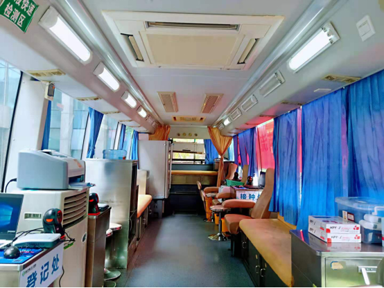 車廂內部的格局與公交大巴車類似,但是座椅數量縮減,只在各登記臺、接種臺設置了少量幾張座椅。