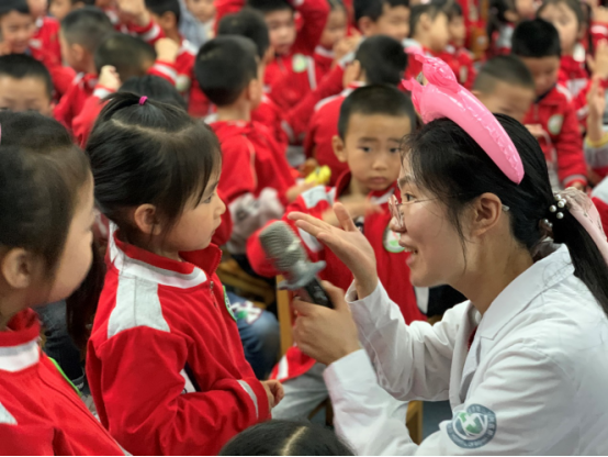 醫護人員不僅為小朋友們講解了健康知識,還積極與他們互動,提問的同時分發小禮品,現場氣氛熱烈。
