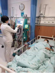 治療期間,CRRT的運行不像別的儀器那樣簡單,它需要醫護人員一直守候在儀器旁,隨時調整置換液的配置、儀器的報警處理及病人管道等。期間醫護人員寸步不離,既要觀察CRRT數據的變化,又要保證管路的順暢,還要監測患者的生命體征及實驗室檢查結果變化。經過CRRT治療及抗感染、加強營養支持治療后,患者現已病情穩定,治療時還常跟護理人員拉家常。