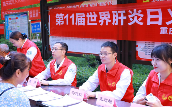 這是“重慶市璧山區人民醫院世界肝炎日義診”活動現場,雖然高溫酷暑,但并未影響肝膽外科團隊的熱情,前來咨詢的居民也絡繹不絕。汗珠掛在醫護人員臉上,但他們無暇擦拭,而是忘我地解答群眾的相關問題。