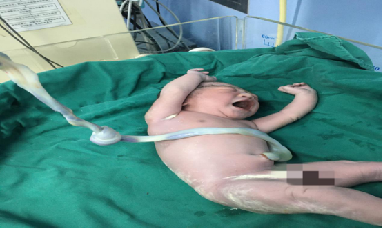 廖超的大腦迅速傳來信號:這是臍帶先露!她立即呼叫醫護團隊,啟動應急預案。婦產科陶才莉主任第一時間迅速聯系手術室、新生兒科、麻醉科等多學科搶救團隊。楊麗被送到急癥手術室,施行緊急剖宮產手術,短短20分鐘胎兒順利娩出。當手術室響起那聲嘹亮的啼哭聲,所有的器械都不再冰冷生硬,而變得異常柔軟,也正是那聲宛如仙樂的啼哭聲治愈了在場所有人懸吊的心。胎兒取出后發現“臍帶真結”,母親給孩子取名叫“安安”,感謝重慶市璧山區人民醫院帶給母嬰平安,也希望寶寶一生健康平安。