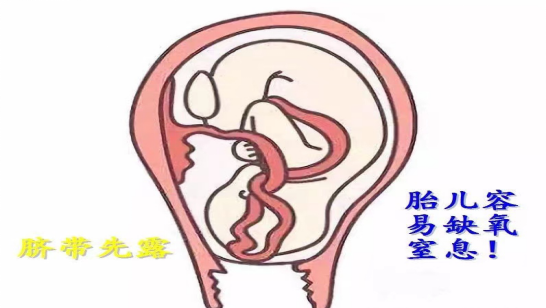 臍帶先露:臍帶位于胎先露部前方或一側,胎膜未破,稱為臍帶先露,此時一旦發生胎膜破裂則很容易發展為臍帶脫垂,也稱為隱性臍帶脫垂。當臍帶脫出于胎先露下方,經宮頸進入陰道內,甚至經陰道顯露于外陰部,稱為臍帶脫垂。臍帶脫垂可導致臍帶受壓,胎兒血供障礙,發生胎兒宮內窘迫甚至危及胎兒生命。