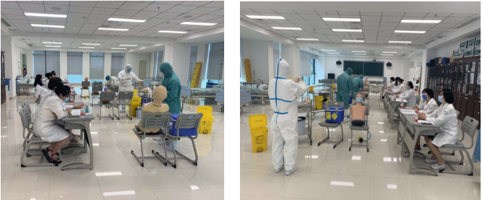 目前,國內外疫情形勢復雜嚴峻,隨著德爾塔病毒的變異,全國多地出現聚集性疫情,為筑牢醫院感染防控的“鐵壁銅墻”,強化感染防控理念,切實提升緊急狀態下疫情防控工作應急處置能力,保障醫務人員和人民群眾的生命安全和身體健康,近日,重慶市璧山區人民醫院護理部、醫務部聯合開展穿脫防護服和核酸采集技能考核。