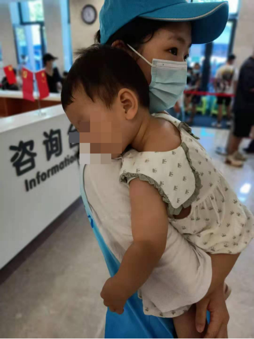 7月24日,在醫院科教樓的疫苗接種點內,一位獨自帶著寶寶來接種新冠疫苗的媽媽,因為要排隊,而抱著寶寶又十分辛苦,志愿者看到后主動上前問其是否需要幫助,那位媽媽了解志愿者信息后,也非常信任地把寶寶交給咱們志愿者暫時照看,寶寶也非常配合地乖乖趴在志愿者姐姐肩上,睡得香甜。