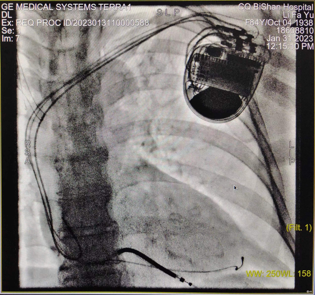 于長青主任高度重視,結(jié)合患者既往病史、治療史,先后多次組織科室團(tuán)隊(duì)及醫(yī)院MDT團(tuán)隊(duì)討論,并報(bào)請(qǐng)醫(yī)務(wù)科批示,最終決定給該患者安置三腔起搏器,實(shí)施雙心室同步起搏的心臟再同步化治療,改善患者的心力衰竭癥狀??剖移鸩娚韴F(tuán)隊(duì)經(jīng)過充分的術(shù)前準(zhǔn)備,于1月31日成功為患者實(shí)施CRT-D介入手術(shù),手術(shù)過程順利,患者無任何不適,術(shù)后5天即安全出院。術(shù)后心電圖提示:竇性心律,雙心室起搏心律,QRS寬度120-130ms,患者勞累氣促癥狀較前明顯改善。
