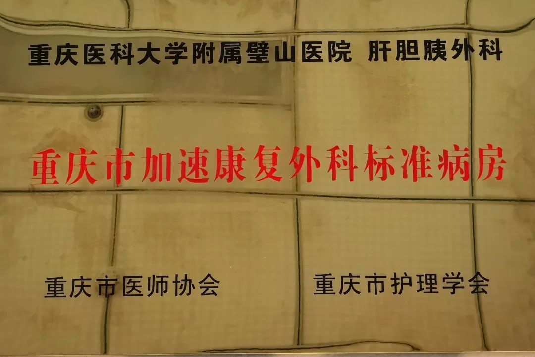 4月27日,“重慶市第一屆加速康復外科護理第二次年會”在重慶醫科大學附屬第二醫院江南院區寬仁會議中心舉行,重慶醫科大學附屬璧山醫院(重慶市璧山區人民醫院)肝膽胰外科正式掛牌“加速康復外科標準病房”,為我院首個掛牌加速康復外科的病房。