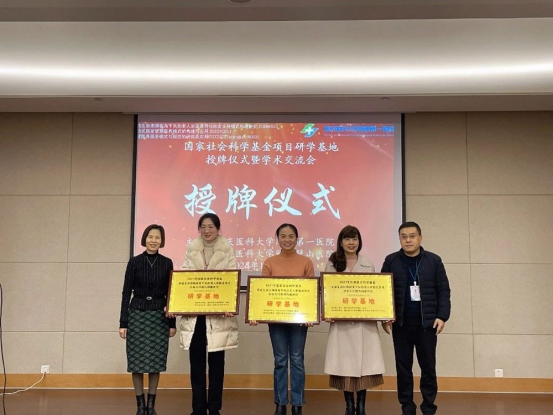 為積極響應(yīng)國家《“十四五”規(guī)劃建議》支持家庭承擔(dān)養(yǎng)老功能的政策要求,深入研究失能老人及其家庭在不同生命周期階段所需的社會(huì)支持,進(jìn)一步促進(jìn)研究成果轉(zhuǎn)化與推廣,2024年1月上旬,重慶醫(yī)科大學(xué)附屬第一醫(yī)院趙慶華教授團(tuán)隊(duì)依托國家社會(huì)科學(xué)基金項(xiàng)目《家庭生命周期視角下失能老人家庭差異化社會(huì)支持模式構(gòu)建研究》(項(xiàng)目編號(hào)21BRK013),在重慶醫(yī)科大學(xué)附屬璧山醫(yī)院(重慶市璧山區(qū)人民醫(yī)院)舉行了國家社會(huì)科學(xué)基金項(xiàng)目研學(xué)基地授牌儀式。