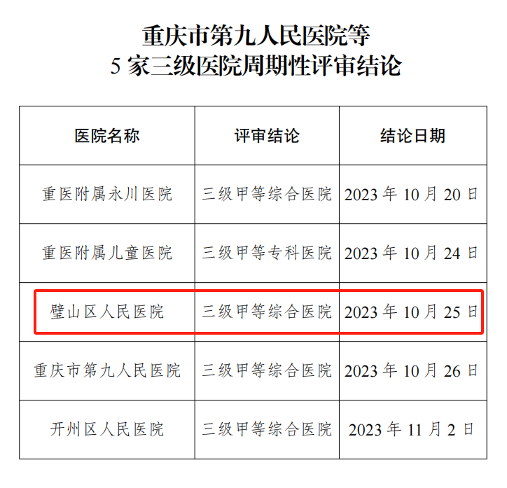 此次評審醫院嚴格按照《重慶市三級醫院評審標準實施細則》開展,經過資格審查、數據填報、現場評審、綜合評分,重醫附屬璧山醫院高質量通過“大考”,交出滿意答卷!