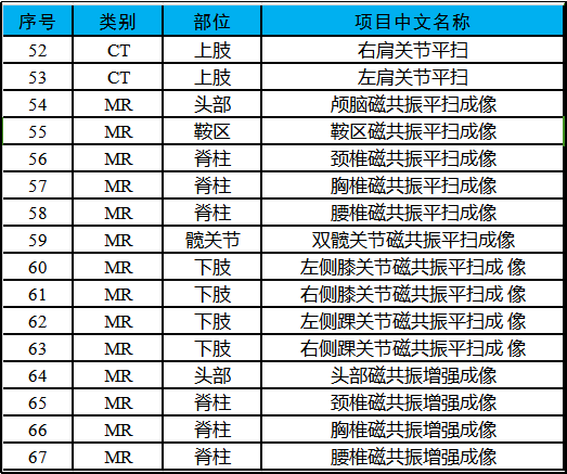 川渝兩地醫學影像檢查結果互認項目共67項。包括X線33項、CT20項、MR14項。