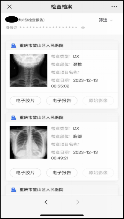 1.全市提供聚合查詢服務,通過支付寶、微信搜索“渝康健”可查詢全市已接入醫院的影像及報告。