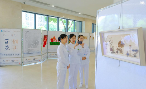 中藥搖身一變化為紅旗、藥渣變廢為寶制成藝術作品……7月1日,為慶祝中國共產黨成立103周年、迎接建軍節,重慶醫科大學附屬璧山醫院(重慶市璧山區人民醫院)舉辦了“慶七一·迎八一 百草創藝”中醫藥美術作品展。此次展覽由本院職工及其子女與三合美術館藝術家導師攜手,共同創作了31幅獨具匠心的藝術作品,展現了中醫藥文化與藝術的融合之美。