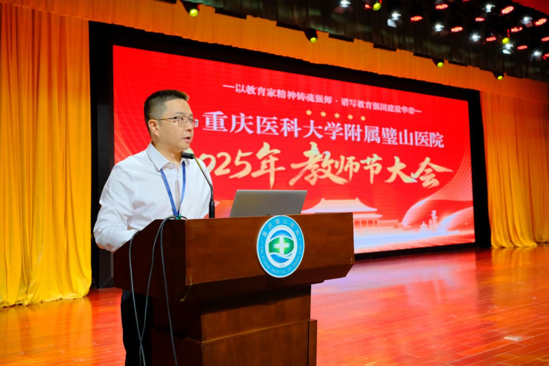 副院長單雪峰宣讀“2024-2025學年教學先進個人、先進集體”表彰文件,以及2025年“琢玉”杯青年教師教學能力比賽獲獎名單,隨后,大會為教學先進個人、先進集體及教學比賽獲獎人員依次頒發了榮譽證書,表彰活動旨在激勵全院教職工以先進為榜樣,積極弘揚追求卓越的教學主旋律,共同為推動醫院高質量發展、培育新時代卓越醫學人才作出新的更大貢獻!
