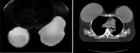近日,重慶醫科大學附屬璧山醫院(重慶市璧山區人民醫院)甲狀腺乳腺外科團隊成功為一名女性患者取出了置入乳房30年的假體,術后恢復良好。