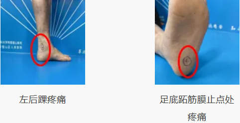 術前檢查發現后踝三角骨撞擊,跖筋膜炎