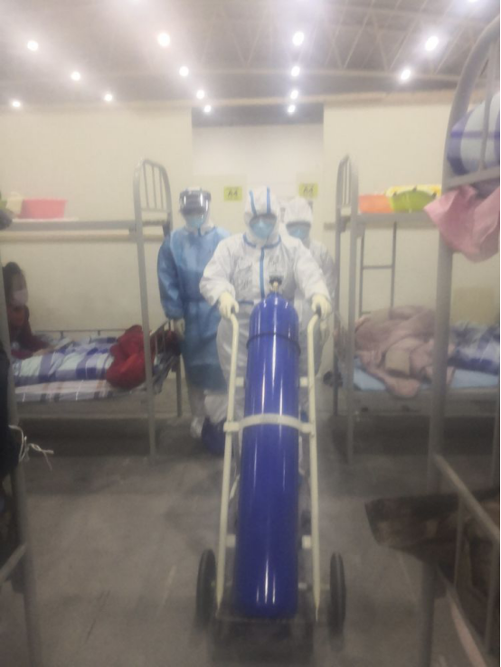 將幾十公斤重的氧氣筒推出,使出渾身力氣轉動閥門!過來助陣的江蘇男護士見此情形,操著江蘇口音感嘆道:“哎呀,我一男的還搞不贏你們女同胞!”隔間里的的其他患者聞言,紛紛笑著為我鼓掌,夸贊我的“女漢子”的風采!