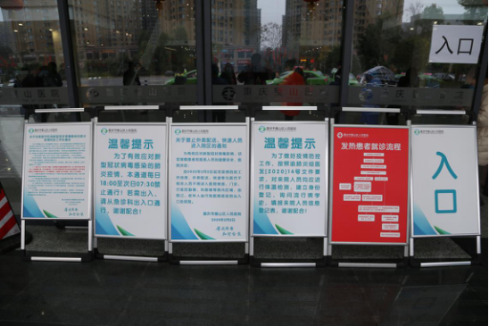 大門前,一塊塊醒目的標識牌如同“擋箭牌”映入眼簾,不僅讓人對疫情防控期間的就診流程、注意事項一目了然,還對外賣、快遞、陪護等做出明文規定。