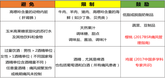 專家提醒,對于痛風病人的飲食應避免進食高嘌呤食物,如動物內臟、魚蝦類、肉類、菠菜、蘑菇、黃豆、扁豆、豌豆、濃茶等。嚴禁飲酒,多進食堿性食物,如牛奶、雞蛋、馬鈴薯、各類蔬菜、柑橘類水果。
