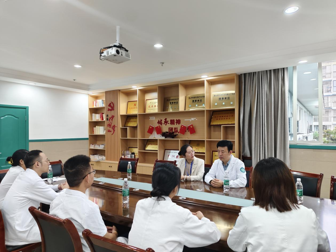 查房結束后,閆慶凱主任與我院主要領導及幫扶團隊成員舉行了座談。座談會上,院領導對閆主任的悉心指導表示衷心感謝,并簡要介紹了醫院近期的發展概況與面臨的挑戰。派駐團隊成員也踴躍發言,分享了在實踐工作中遇到的困惑與思考。聽了大家的發言,閆慶凱針對大家提出的問題進行了精準解答,就如何進一步優化人才培養、暢通雙向轉診流程等方面提出了前瞻性的建議。他指出,黨建醫共體的核心在于“共建、共享、共贏”,未來重醫附屬璧山醫院和成員單位之間將繼續加強緊密協作,推動優質醫療資源持續下沉,共同為區域百姓的健康福祉貢獻力量。