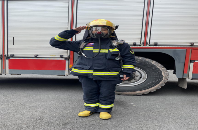 大朋友、小朋友們穿上消防戰(zhàn)斗服,體驗(yàn)穿消防戰(zhàn)斗服滅火